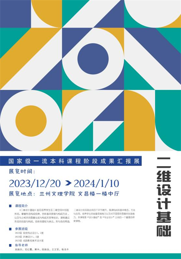 2023年12月20日,bwin必赢唯一官网“二维设计基础”国家级一流本科课程课业展在文昌楼一楼中厅举办。